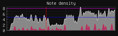 • Note density graph is a sum of Gaussians, and the average notes-per-second value uses a root-mean-square based algorithm to be a more useful measure of overall chart density than an arithmetic mean of time-bins.
