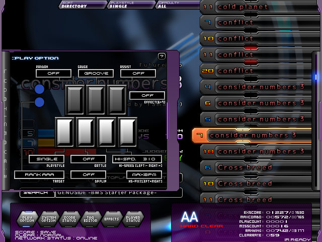 LR2 was followed up by beatoraja, a next-gen BMS client by exch. Written in Java and hosted on GitHub, it expands on LR2’s feature set, adding higher resolutions, more QoL and better stability. While still clunky in some aspects, it’s an incredibly impressive effort, and the best we have right now. The language barrier proved to make it difficult to contribute improvements to the original repository, so western development has continued in forks like Endless Dream.